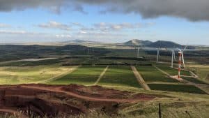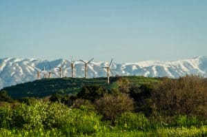 הליכה בין מטעי תפוחים, טורבינות הרוח וחורש ים תיכוני