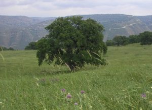 יער אלוני תבור במותניים הצרות של הגולן, מבט אל נהר הירמוך והצצה אל השכנים במזרח.