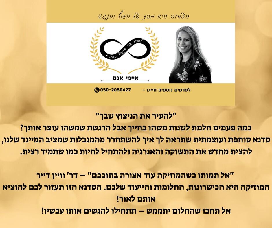 סדנא עוצמתית בת 6 מפגשים לנשים שמרגישות שהחיים קוראים להן לפרוץ, לשנות, להגשים ולמי שרוצה הכוונה, בהירות וחיבור מחודש לעוצמה שבה.