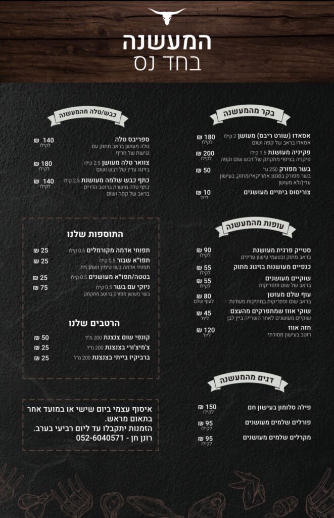 מכירת בשרים מעושנים וצלויים. בנוסף ניתן להזמין מגשי אירוח.