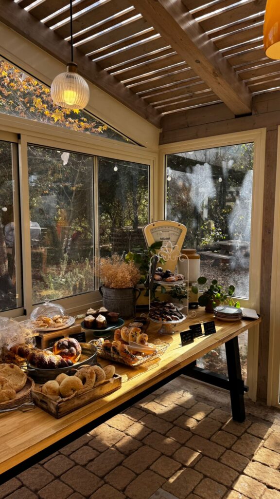 בית קפה קטן ואינטימי הנמצא במרפסת ביתי בקיבוץ מרום גולן בו אני מגישה מאפים מתוקים ומלוחים עוגות ועוגיות