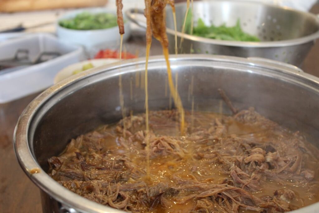 שמנו בסיר בשר בקר ובישלנו אותו שעות ארוכות ברוטב ברביקיו מיוחד, הוספנו תבלינים ואהבה, פירקנו אותו לחוטים רכים ונימוחים,