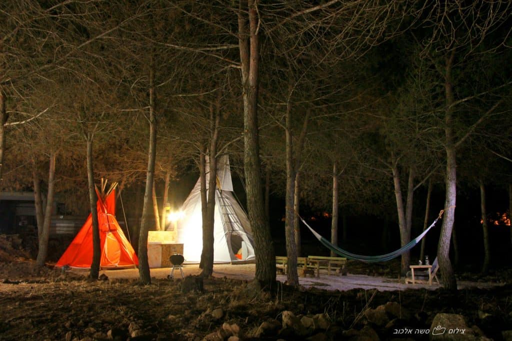 קמפינג בחורשת אורנים, במושב שעל בצפון רמת הגולן הכולל – 9 אוהלים אינדיאנים טיפי ממוזגים ומאובזרים במזרונים, מיני מקרר, מיקרוגל, קומקום חשמלי, עם שירותים ומקלחות פרטיים באוהל אינדיאני נוסף.