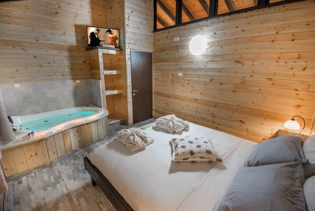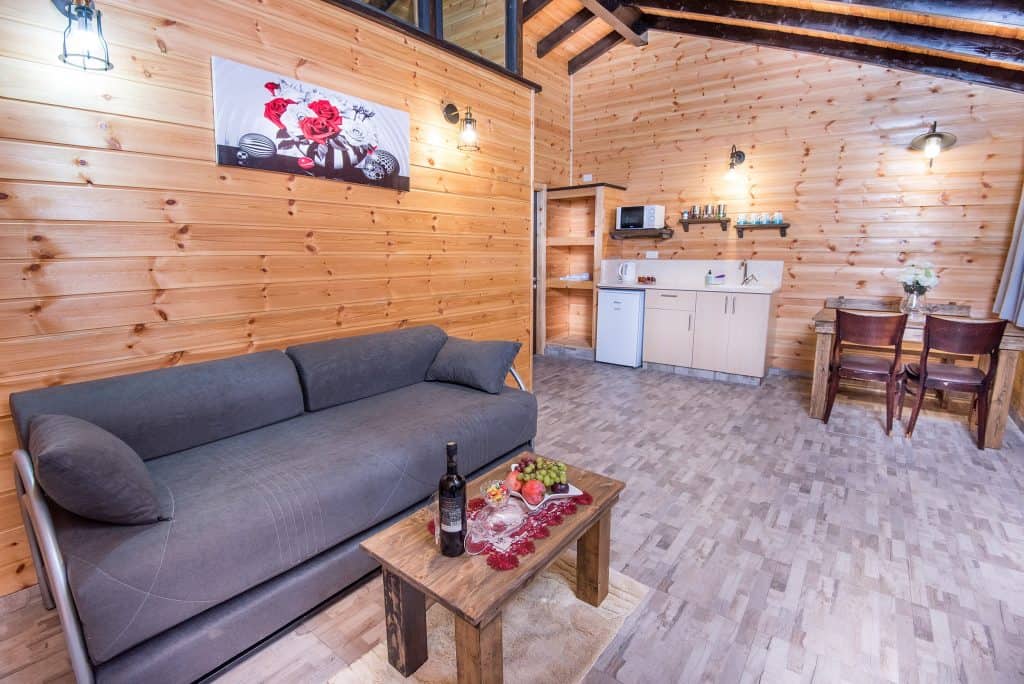בכל אחת מהבקתות תמצאו סלון, מטבחון, חדר הורים פרטי עם ג’קוזי זרמים אינטימי, חדר אמבט, מיזוג אוויר, תאורה ומרפסת דק פרטית בפתח הבקתה עם פינת ישיבה נעימה.