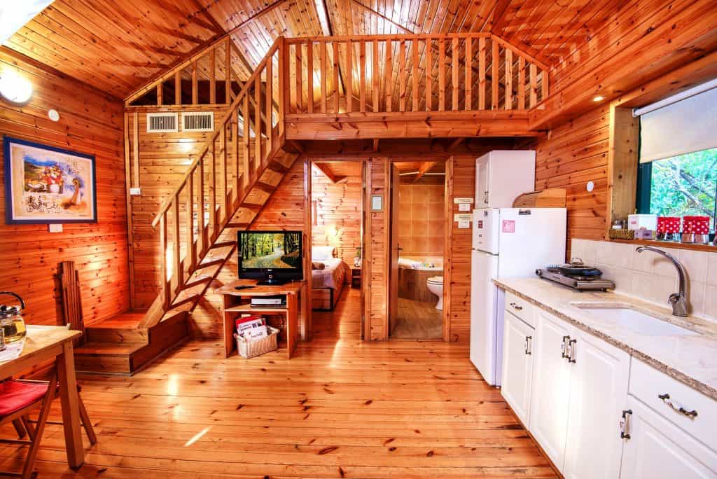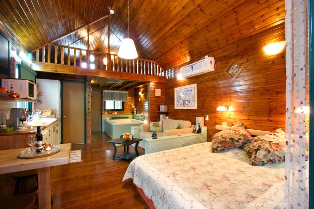במתחם 4 בקתות עץ מאובזרות: 2 בקתות זוגיות ו-2 בקתות משפחתיות