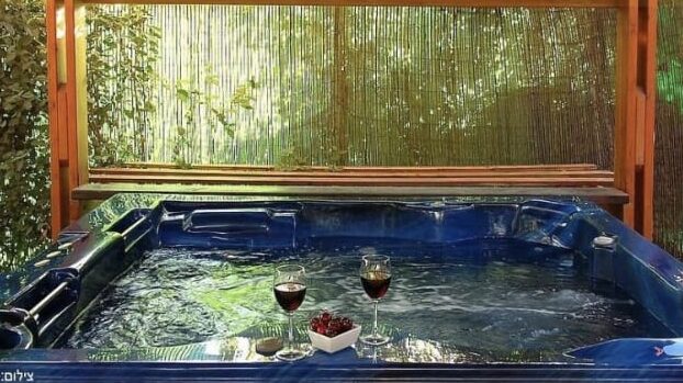 בקתה רומנטית בודדת ומפנקת עם בריכה חיצונית עונתית בנוסף ג’קוזי ספא חיצוני כל השנה