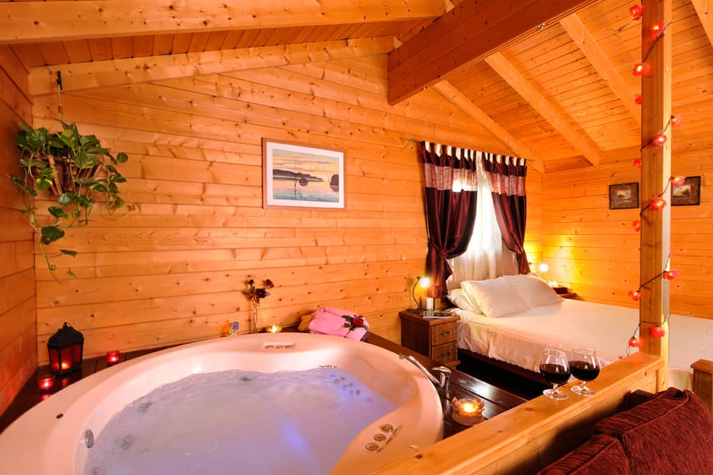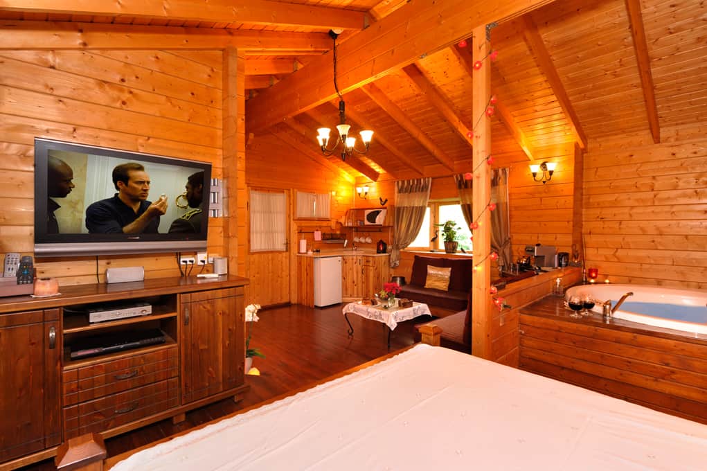 בכל בקתה ג’קוזי עגול ענק , מיטה זוגית, מטבחון מאובזר, מכונת קפה, חלוקים, נרות ריחניים, קצף לג’קוזי, תכשירי רחצה, סלון קטן, מרפסת עם שולחן וכסאות. בחצר יש לכל בקתה מנגל, ערסל ופינת ישיבה.