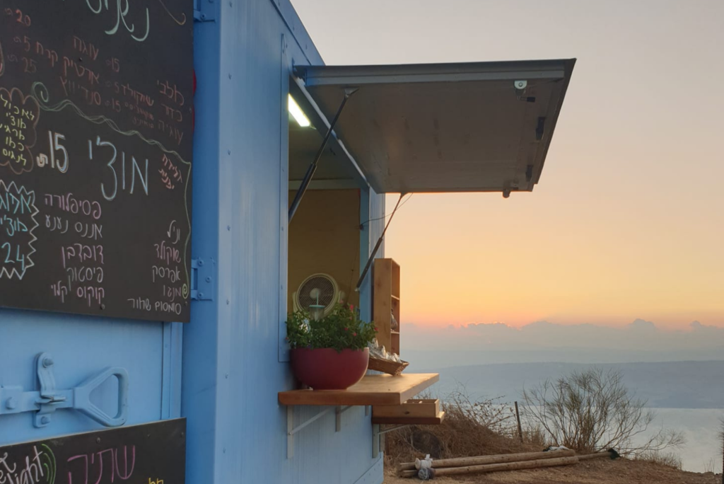 מה? עגלת קפה חמה על קצה הצוק מול נוף הכינרת עם טוסטים יצירתיים, מוצי ומאפים מפנקים ושתיה מגוונת.