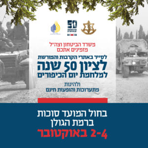 השנה לרגל ציון 50 שנים למלחמת יום הכיפורים יתקיימו מגוון סיורים, הדרכות ופעילויות באתרי המורשת השונים. ללוח האירועים המלא לחצו כאן.